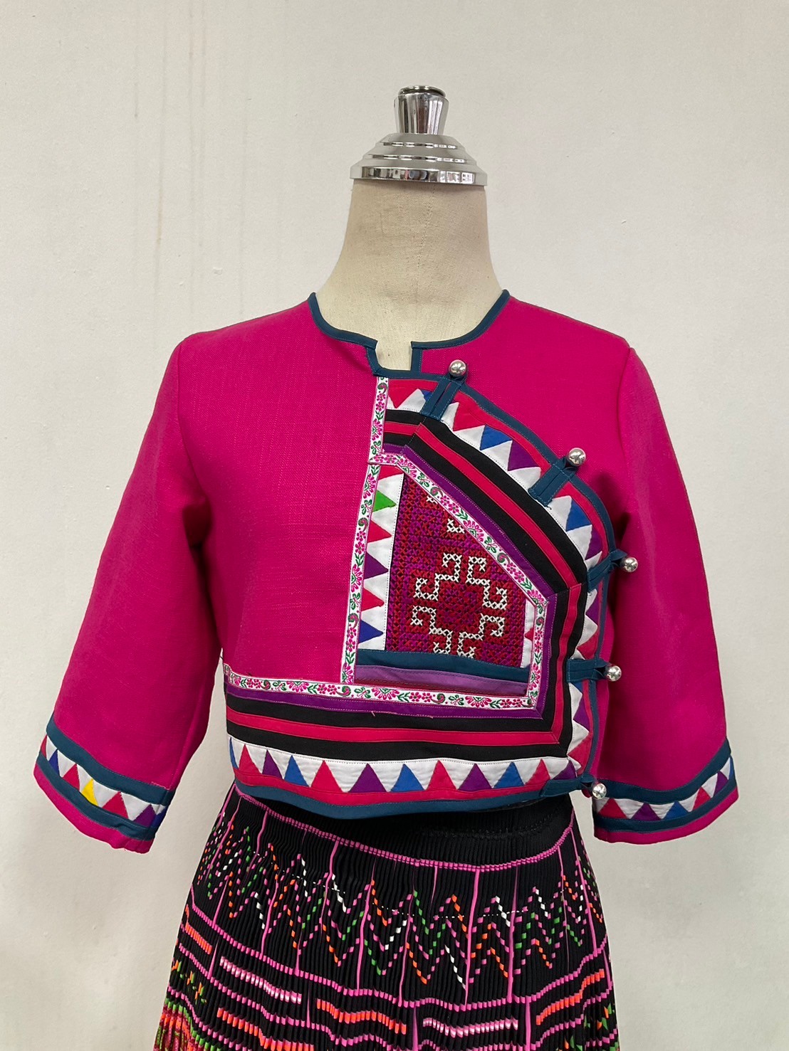 ตกแต่งด้วยกระดุม ลายจิกมือ และลายปักม้ง