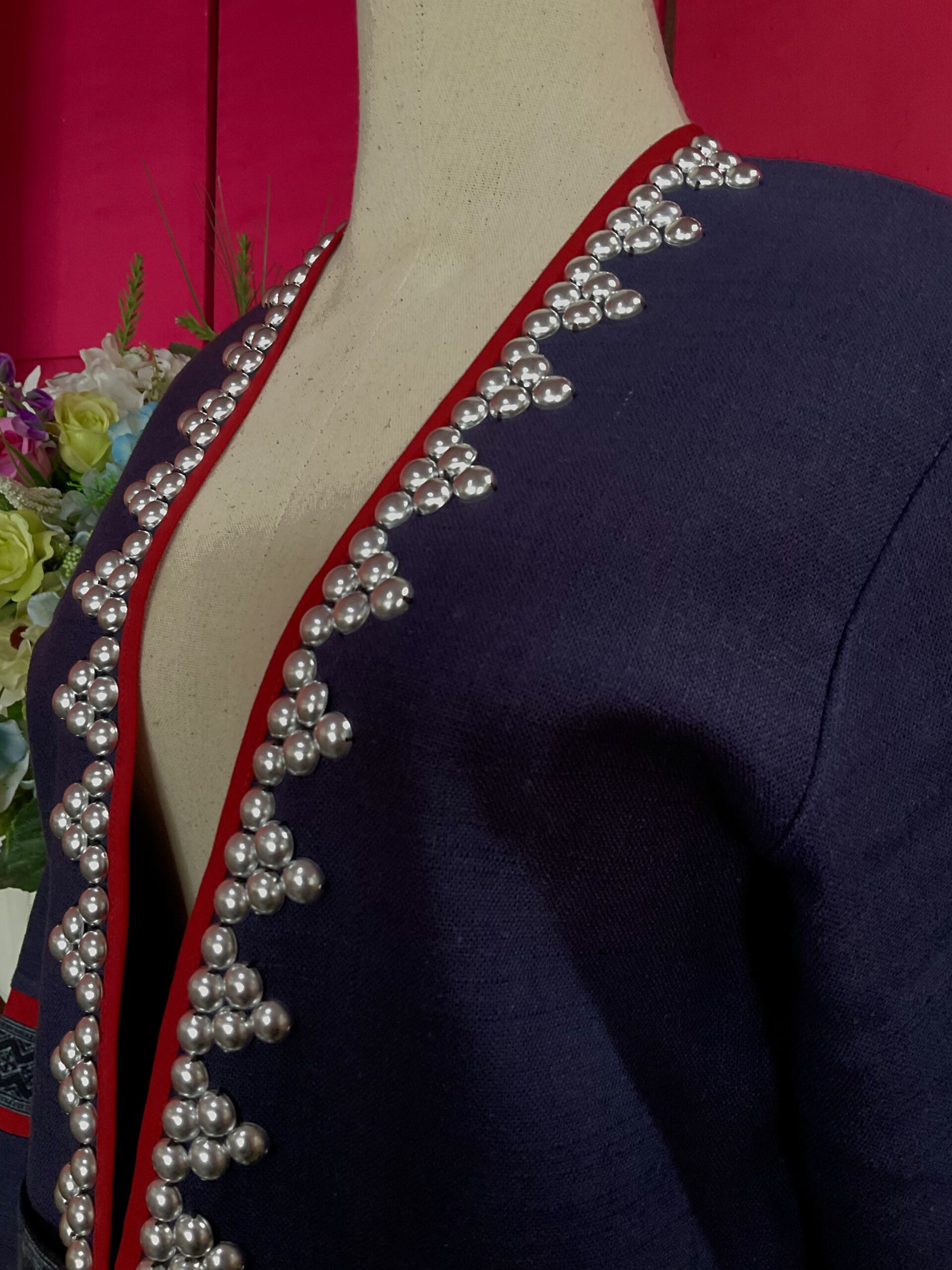 เสื้อคลุมผู้หญิง ย้อมด้วยฮ่อม (สีธรรมชาติ) ตกแต่งด้วยลายผ้าปักม้ง (บ้านสิบสองพัฒนา ตำบลผาช้างน้อย อำเภอปง จังหวัดพะเยา