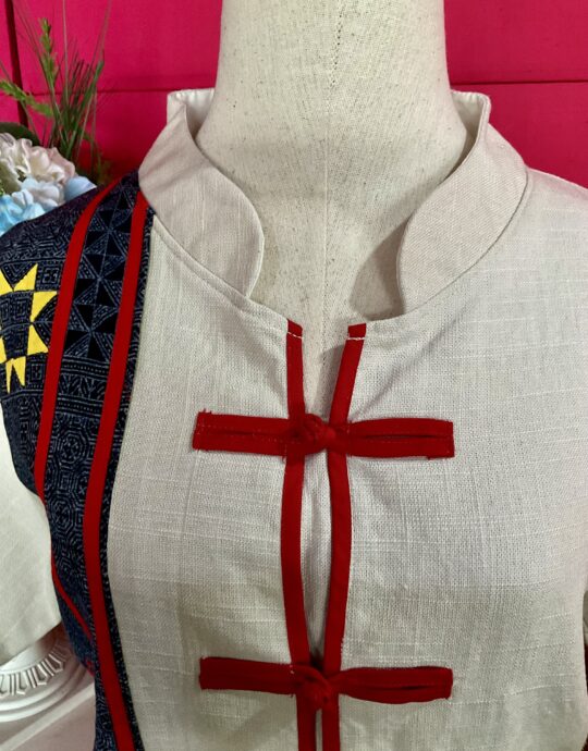 เสื้อชนเผ่าประยุกต์ แบบเต็มตัว ทำจากผ้าใยกัญชง ซึ่งมีคุณสมบัติระบายอากาศได้ดี สวมใส่แล้วไม่รู้สึกร้อน