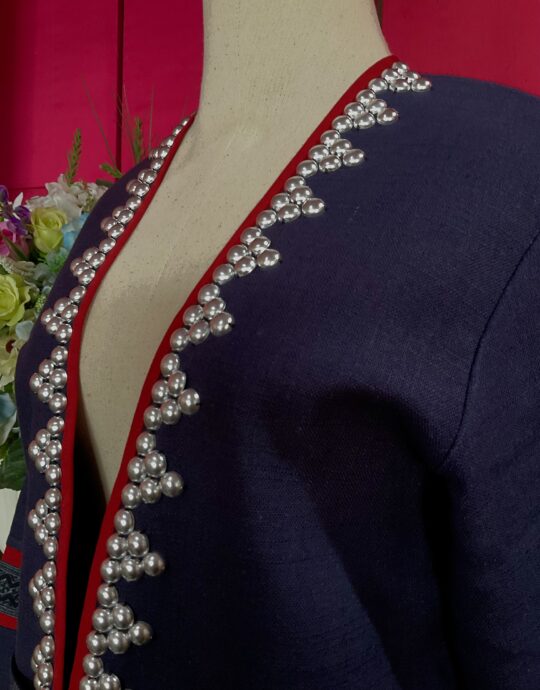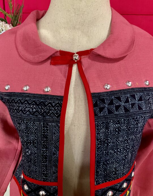 ตกแต่งด้วยลายผ้าปักม้ง พู่ไหมพรม และกระดุมเงิน